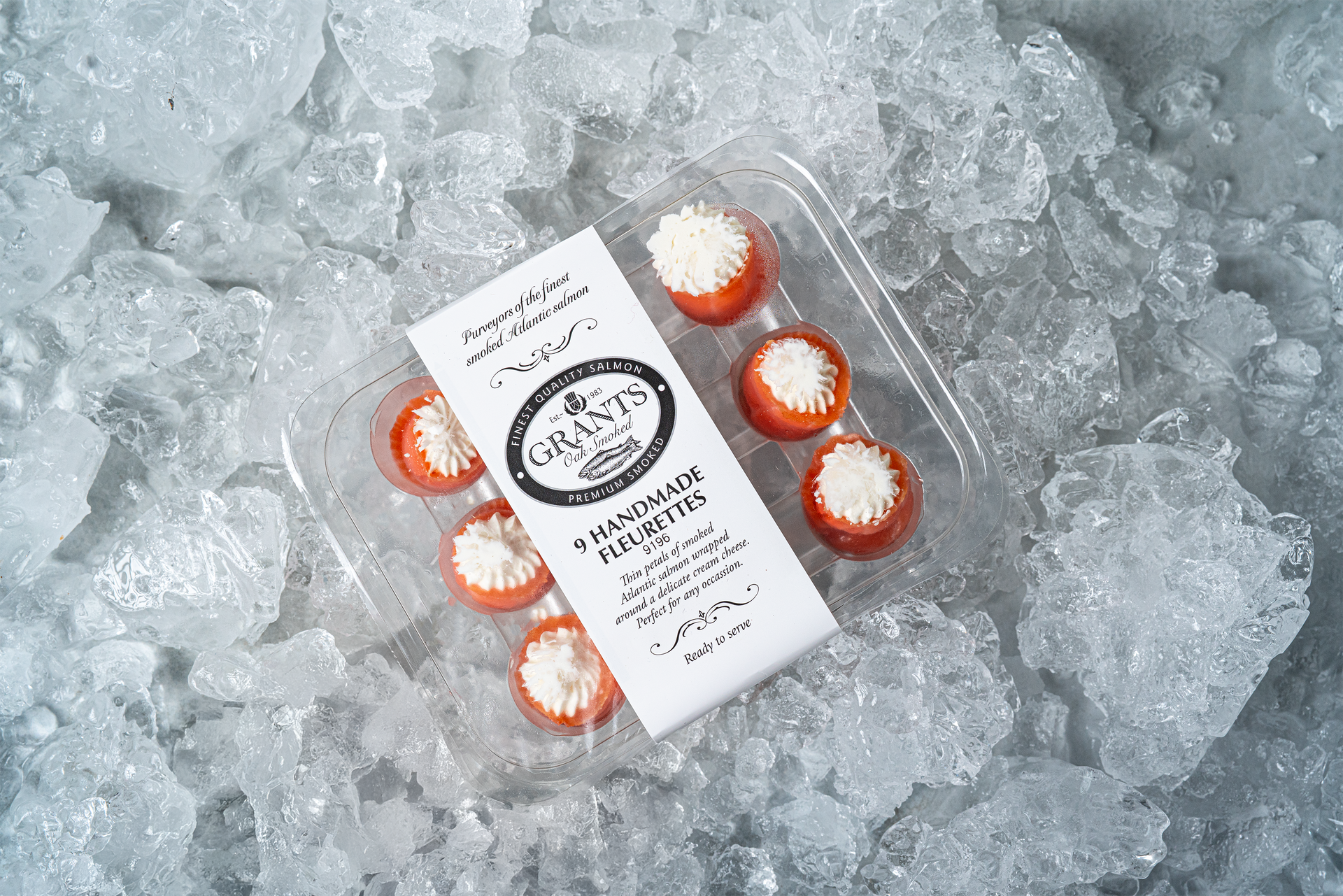 Our delicious award-winning oak smoked salmon is delicately wrapped around rich, velvety cream cheese, creating a perfect balance of flavors. Each fleurette is expertly crafted and vacuum-sealed to preserve freshness, ensuring a melt-in-the-mouth experience with every bite. Elegant, flavorful, and effortlessly ready to serve, these exquisite treats offer the ultimate indulgence in taste and texture.