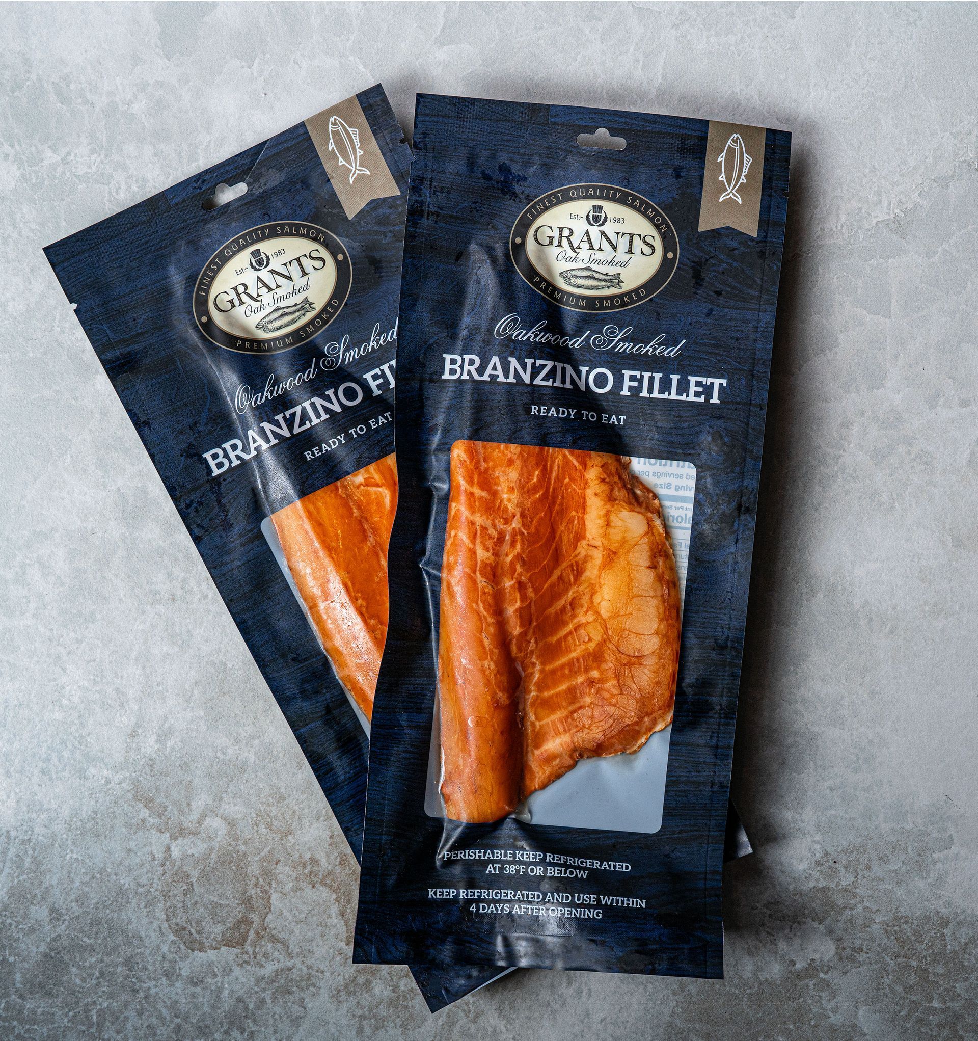 Premium branzino fillets expertly cured and slowly smoked over oak wood for a rich, buttery flavor. Responsibly sourced and packed with heart-healthy Omega-3s.